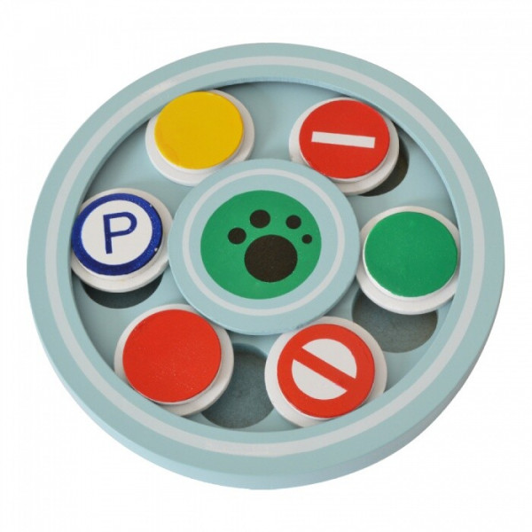 Motivační hračka Candy slouží k interakci mezi pejskem a páníčkem. Zvídavý pejsek hledá různými způsoby malý pamlsek. Způsob hraní této hry spočívá v tom, že pejsek posouvá kulaté poklopy a hledá kde se skrývá odměna. Desková hra je vyrobena ze dřeva a je ideálním hračkou pro každou chvíli. Motivace prostřednictvím hry a přímá odměna při řešení úkolů. Rozměry: průměr: 22 cm, výška: 2,5 cm